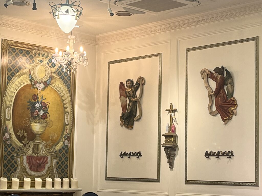 管理人の私は図らずも、大柄のもみじ柄ショールをくるりと巻いて。